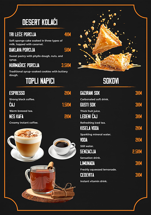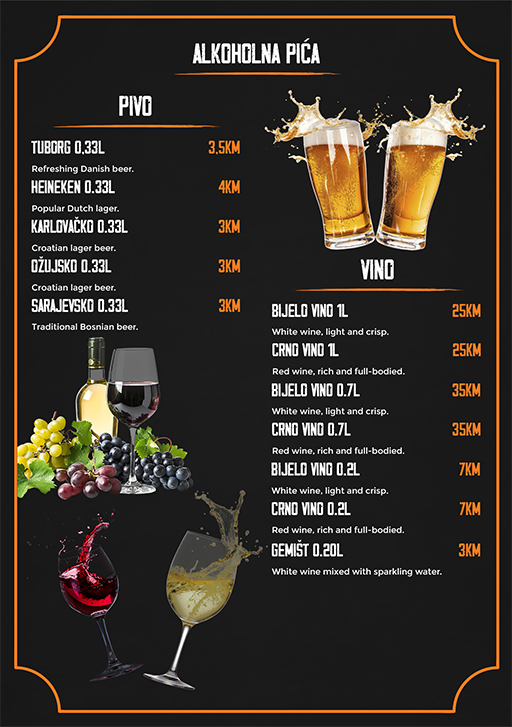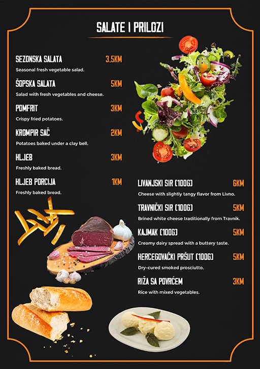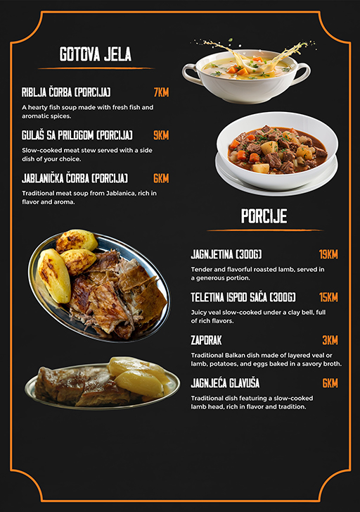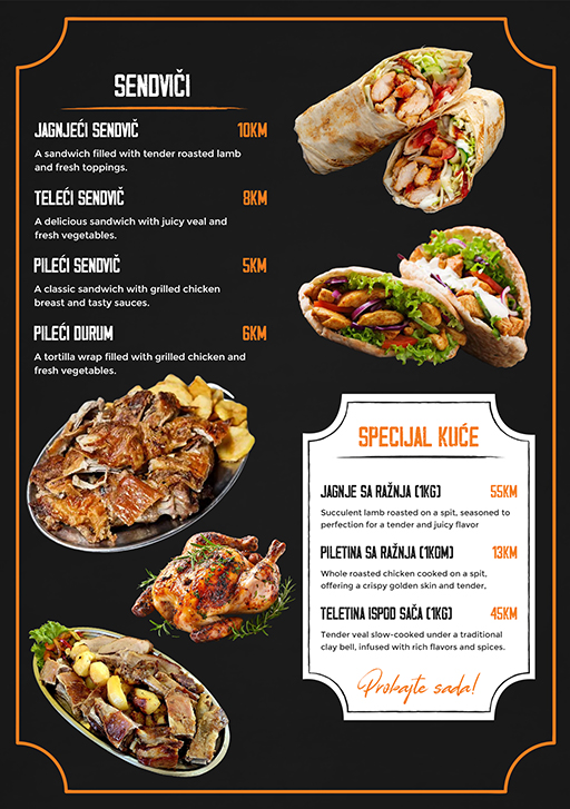 I independently worked on graphic design for Pečenjara Bešić, creating the menu design, food catalog, and pricing materials.