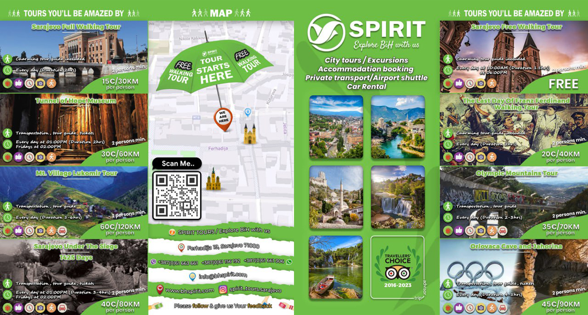 In collaboration with Digital Vision, I worked on flyer design for Spirit Tours Sarajevo, creating promotional materials for their tourist offers.