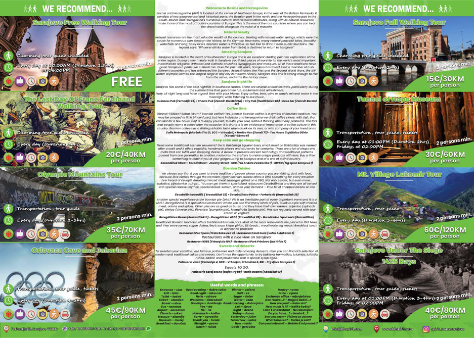 In collaboration with Digital Vision, I worked on flyer design for Spirit Tours Sarajevo, creating promotional materials for their tourist offers.