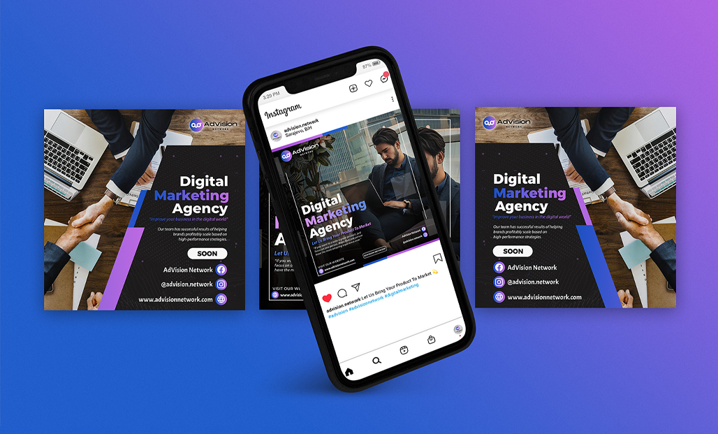 In collaboration with NexaEcho, I worked on Instagram post design for AdVision Sarajevo, creating promotional and brand-focused social media visuals.